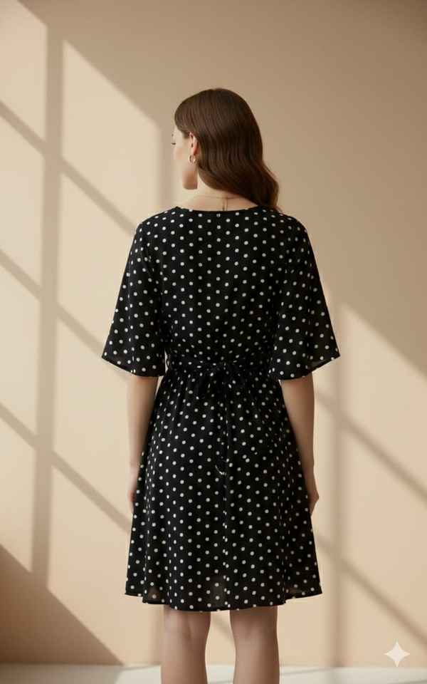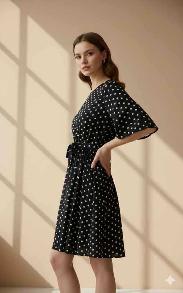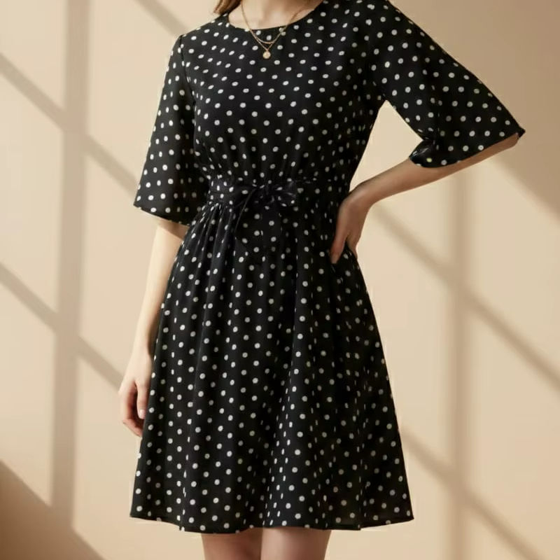 เดรสสายเดี่ยวผู้หญิง ลายจุดธรรมชาติ ผ้าพลิ้ว ระบายอากาศได้ดี โพลีเอสเตอร์ 100% สไตล์ลำลอง ติดกระดุม สีฟ้า ทรงเอไลน์