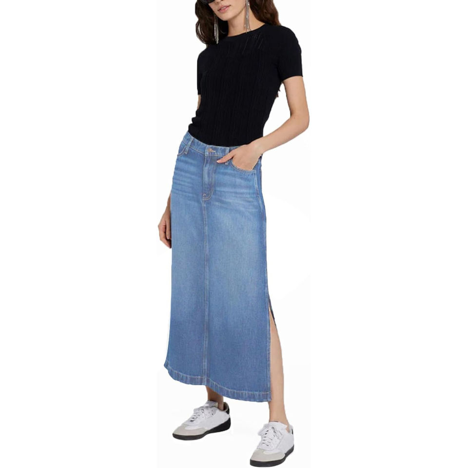 กระโปรงผ้ายีนส์สำหรับผู้หญิงกระโปรงผ้าฝ้ายย้อมสี100% เรียบระบายอากาศได้ดีทันสมัยสำหรับฤดูหนาว