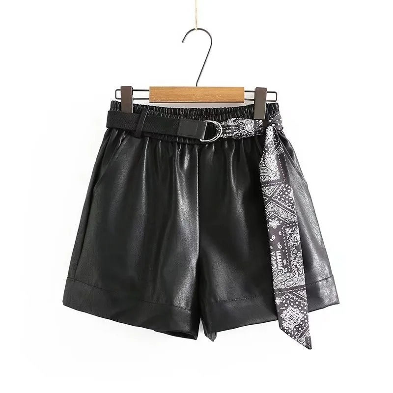 กางเกงขาสั้นผู้หญิงกางเกงหนัง PU สำหรับฤดูหนาว, กางเกงแฟชั่นใหม่2025รองเท้าบูททรงหลวมพร้อมเข็มขัดผ้าคอตตอน
