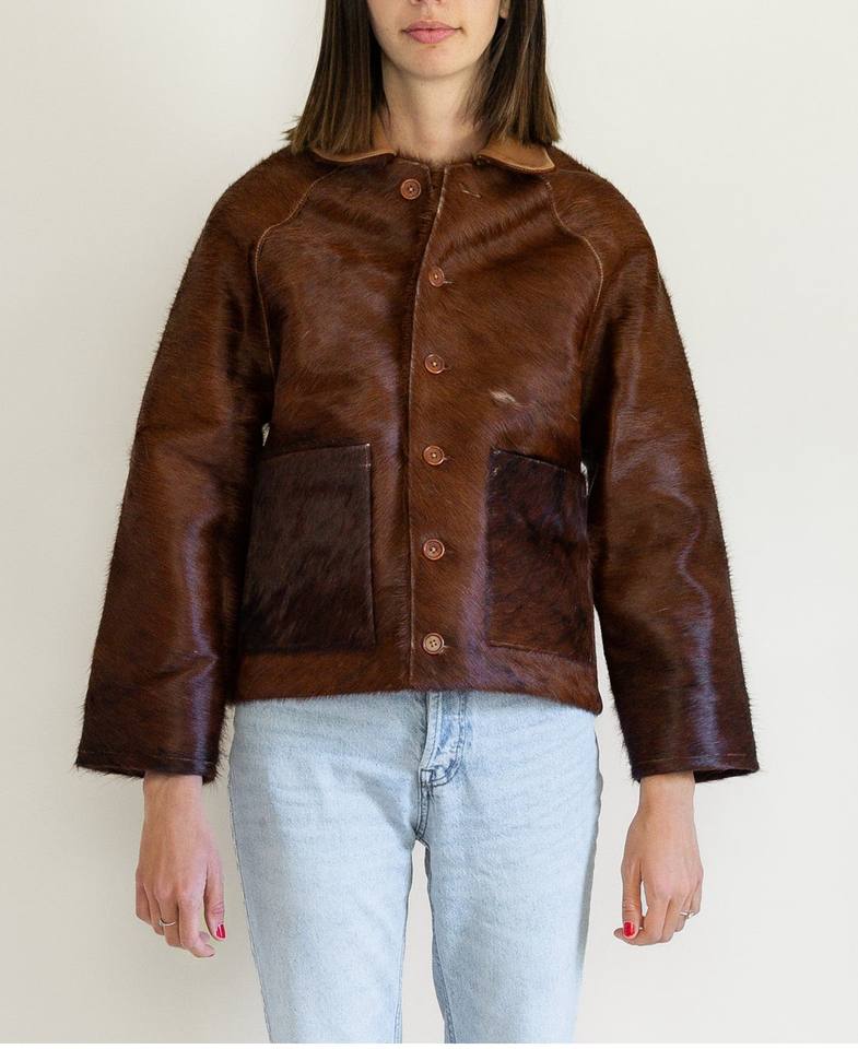 women's top trending winter cow hairs leather jacket solid turn collar design with full sleeves and breathable satin lining