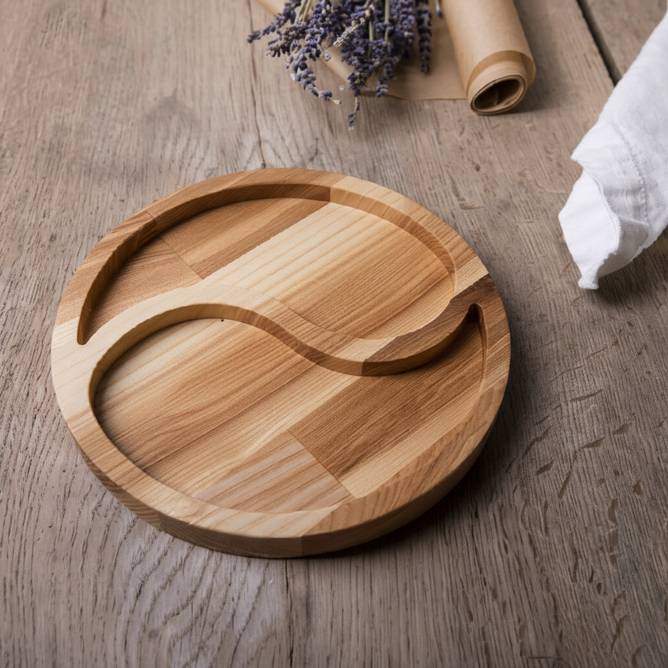 ถาดไม้ตกแต่ง ถาดอีด ถาดรอมฎอน ลายพระจันทร์และดาว ของตกแต่งบ้าน ถาดเสิร์ฟอีด รูปทรงกลม