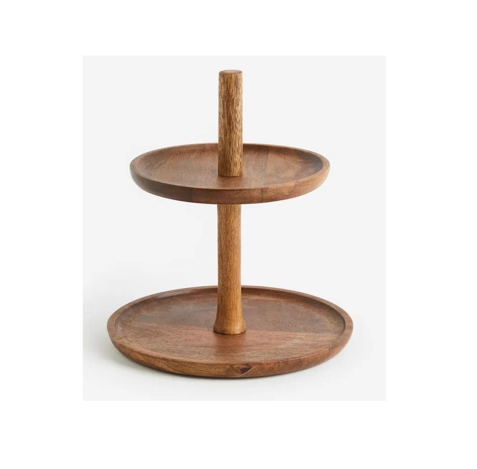 ถาดไม้วางเค้กขนมหวาน2ชั้นทำจากไม้สำหรับงานเลี้ยงวันเกิดชาเค้กไม้ถาดโชว์อาหาร