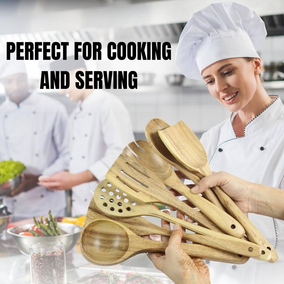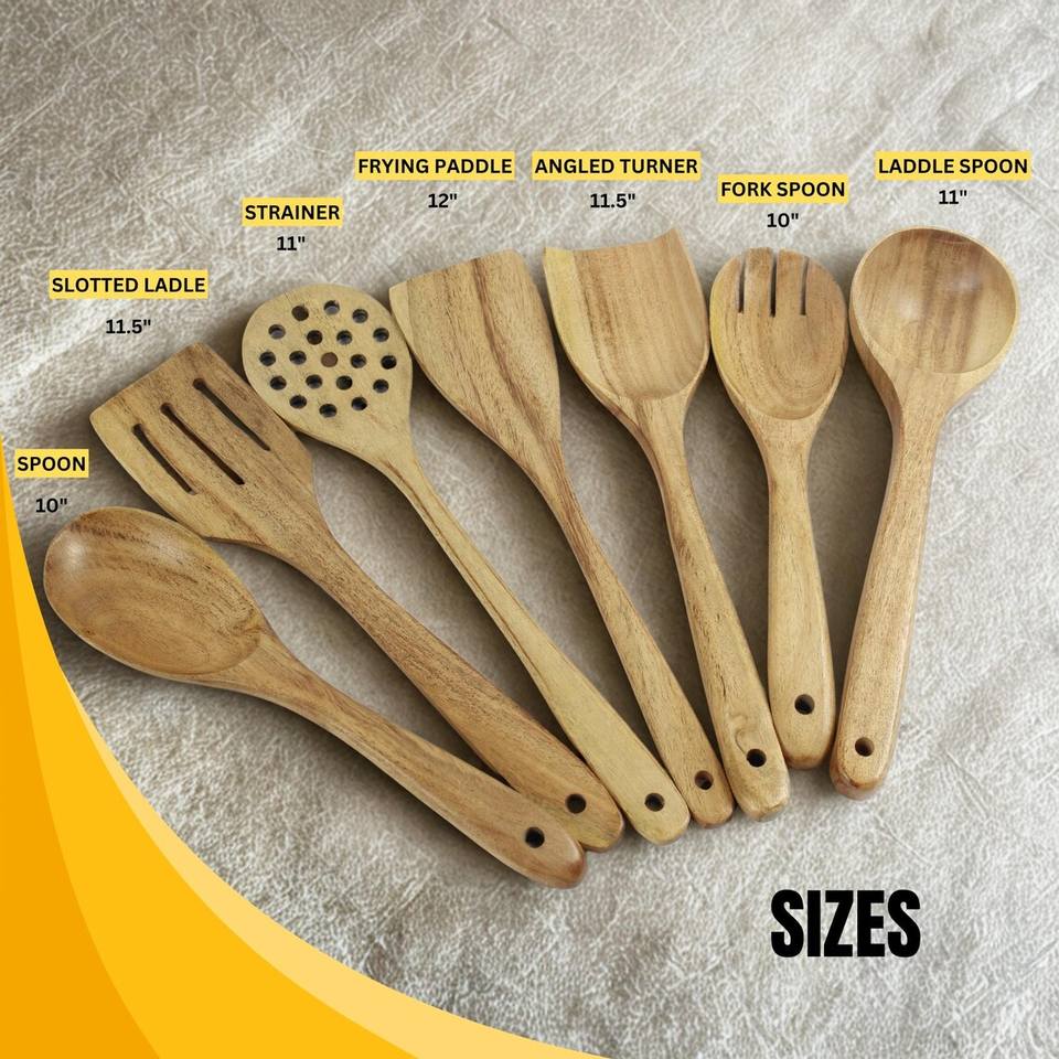 ชุดอุปกรณ์ครัวไม้ ชุดทำอาหาร ช้อนไม้กระถินณรงค์ทำมือ ช้อนและตะหลิว 7 ชิ้น สำหรับอบ ตัก และผสมอาหาร – ของขวัญคริสต์มาส