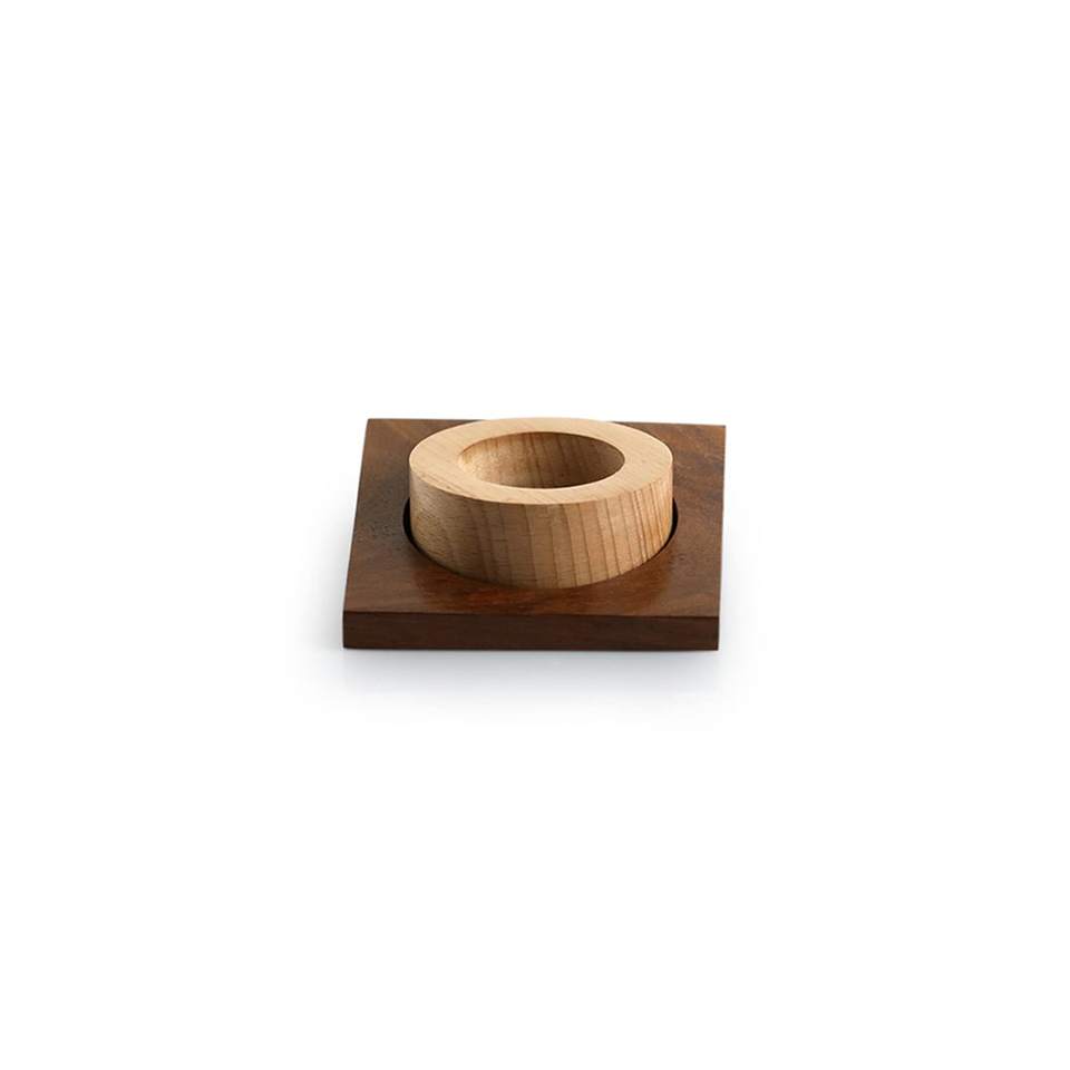 เชิงเทียนไม้ทรงกลมฐานสี่เหลี่ยมสำหรับใส่เทียนทีไลท์ ของตกแต่งทันสมัย ทำด้วยมือ สไตล์มินิมอล