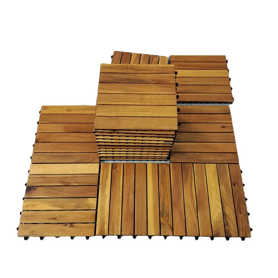 กระเบื้องปูพื้นไม้อะคาเซียกันน้ำขนาด300*300มม. ยุโรปคลิกเร็วสำหรับตกแต่งภายใน-ภายนอกบ้านสวนหลังบ้านสำหรับตกแต่งสวนหลังบ้าน