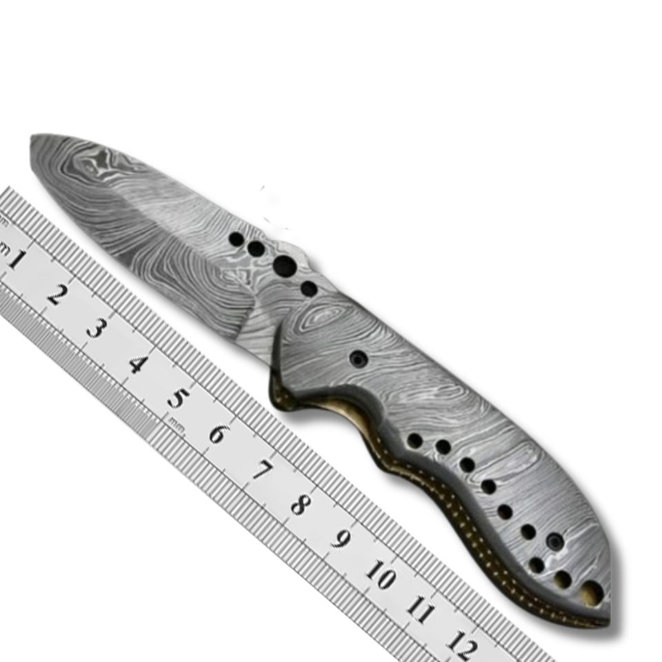 มีดพับแบบพกพาทำด้วยมือทำด้วยมือมีดพับเหล็กดามัสกัสพร้อมด้ามเหล็กดามัสกัส