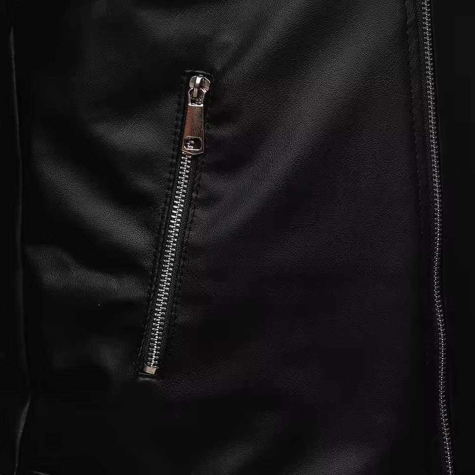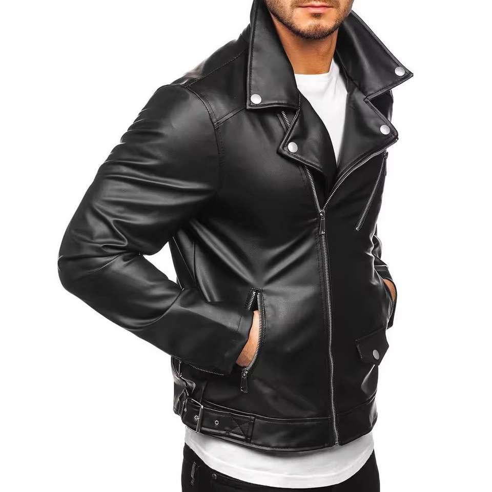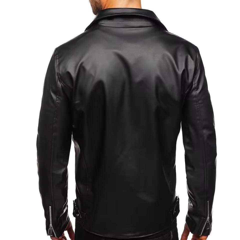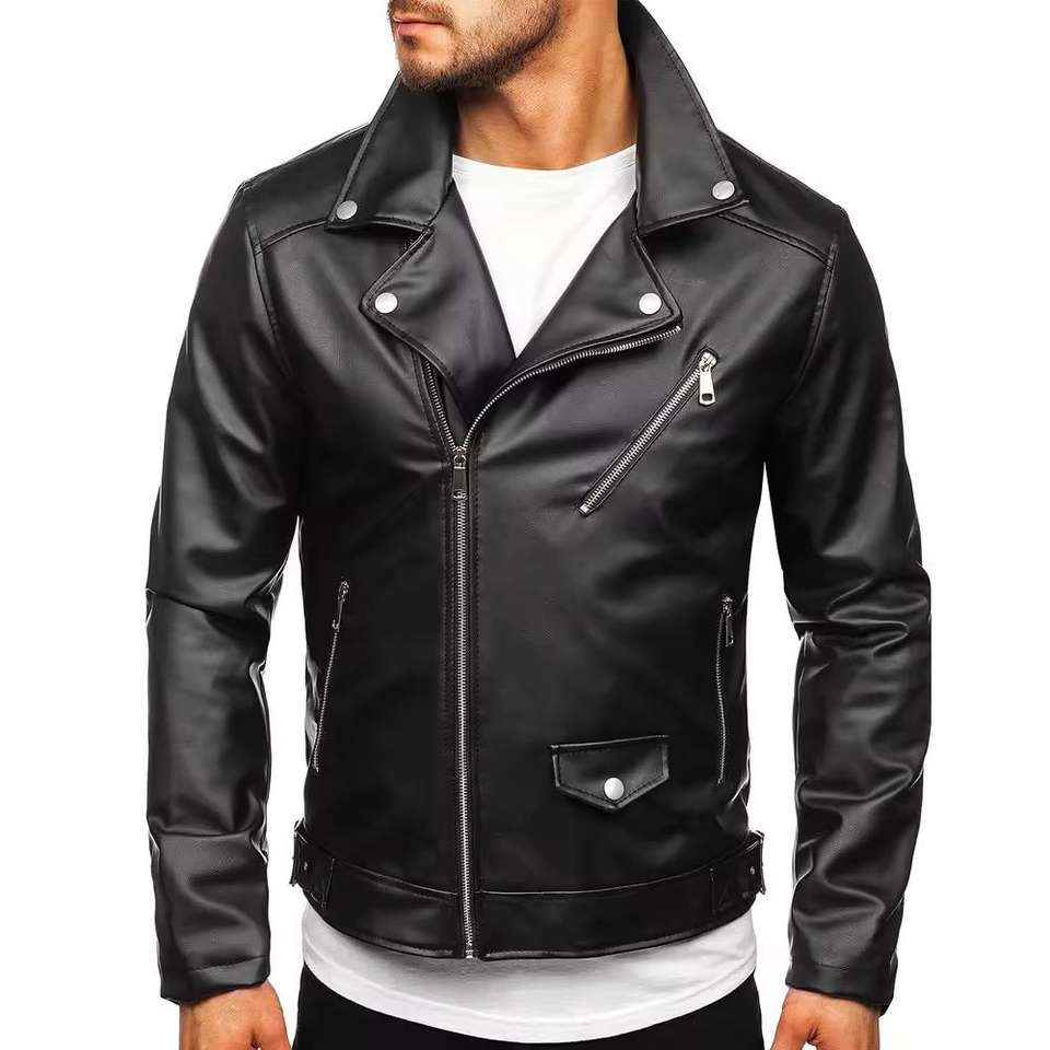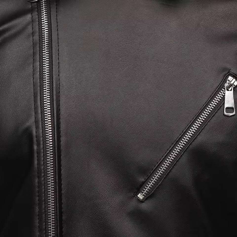 Y 2025แจ็กเก็ตหนังผู้ชายใส่สบายคอปกตั้งและโลโก้ด้านหน้าแขนยาว