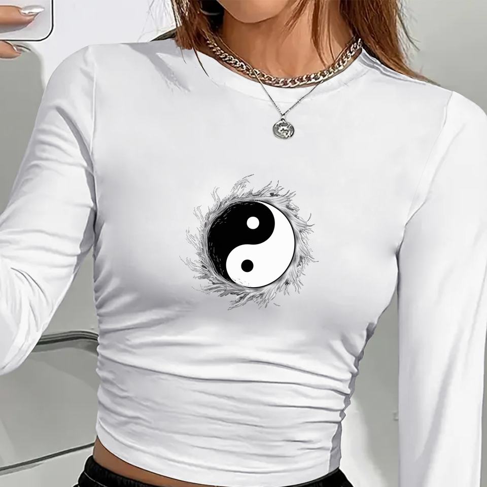 หยินหยางเสื้อแขนยาวแฟชั่นผู้หญิงลายของเหลว