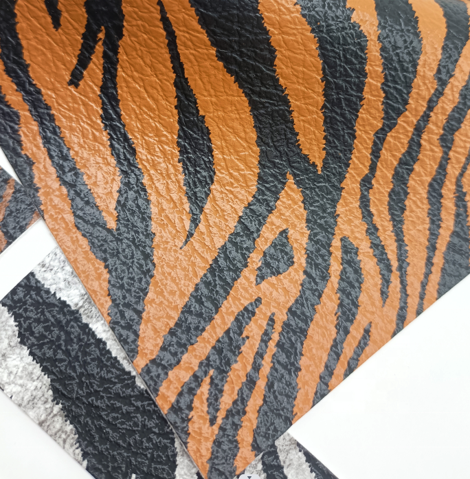 หนังเทียมพิมพ์ลายม้าลาย PVC ผิวสัมผัสคล้ายหนังวัวแท้ วัสดุ PU สำหรับรองเท้า กระเป๋า เสื้อผ้า