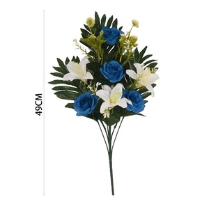 ช่อกุหลาบประดิษฐ์สีฟ้าดอกไม้ผ้าไหมจำลองสูงตกแต่งบ้านงานแต่งงาน