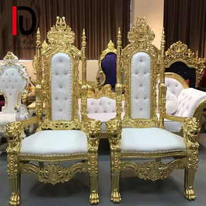 ชุดเฟอร์นิเจอร์สำหรับงานเลี้ยงในโรงแรม,ชุดโซฟาเก้าอี้บัลลังก์ราชินีสีทองหรูหราสำหรับเจ้าสาวและเจ้าบ่าว2ที่นั่ง