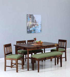 โต๊ะรับประทานอาหารไม้สักอบแห้งร่วมสมัยชุดเก้าอี้6ตัวสำหรับใช้ในบ้านในร่มสำหรับร้านอาหารคาเฟ่โรงแรมร้านกาแฟ