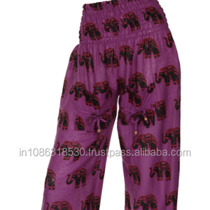 กางเกงผ้าฝ้ายอินเดียพิมพ์ลายช้างโยคะฮิปปี้โบฮีเมียนยืดหยุ่นใส่ได้ทั้งชายและหญิง